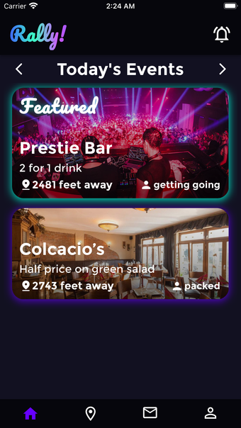 สำรวจเหตุการณ์หลากหลายตั้งแต่คอนเสิร์ตจนถึงปาร์ตี้ด้วยคุณสมบัติค้นพบเหตุการณ์ของ Rally! รับประโยชน์จากข้อเสนอพิเศษที่งานและร้านอาหาร เพื่อให้คุณได้สนุกมากขึ้นในราคาที่ถูกกว่า ติดต่อกับบุคคลที่คิดเหมือนกัน ส่งข้อความถึงผู้ใช้คนอื่น ๆ และสร้างเพื่อนใหม่หรือเชื่อมต่อกับเพื่อนเก่าผ่านคุณสมบัติการเชื่อมต่อทางสังคมของแอป ดูเหตุการณ์บนแผนที่แบบอินเทอร์แอคทีฟเพื่อการนำทางที่ง่าย ๆ ไม่ว่าคุณจะสำรวจย่านของคุณหรือค้นพบพื้นที่ใหม่